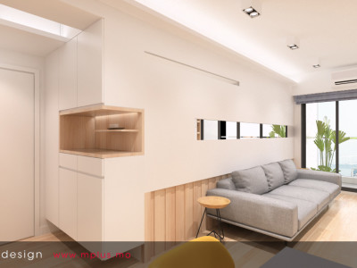 The J unit in Edifcio do Lago is a two bedroom unit. Fresh, natural and brightness is the major concern of the design. In the master bedroom, beach is the theme of the design. Different layers of blue colors were used on the wall to simulate the sky. While green were used in the children’s room to create a happy feeling.
